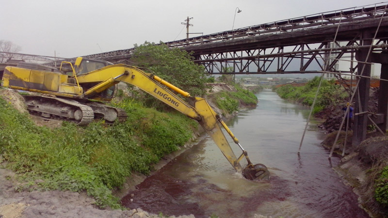 圖一:清理淤積在排澇渠道中的污泥